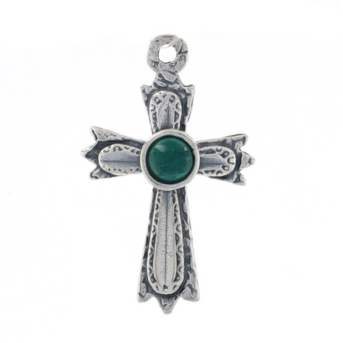 Sterling Silver Malachite Cross Pendant - 925 Round Cabochon Faith