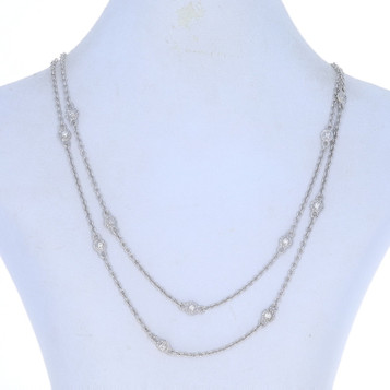 Sterling Silver Mother of Pearl & Cubic Zirconia Necklace 20 1/4" - 925 Rolo