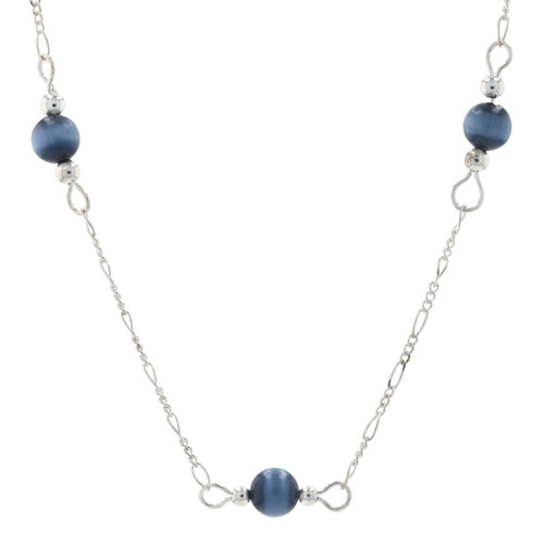 Sterling Silver Simulated Tiger Eye Station Necklace 17 1/4" - 925 Three-Stone