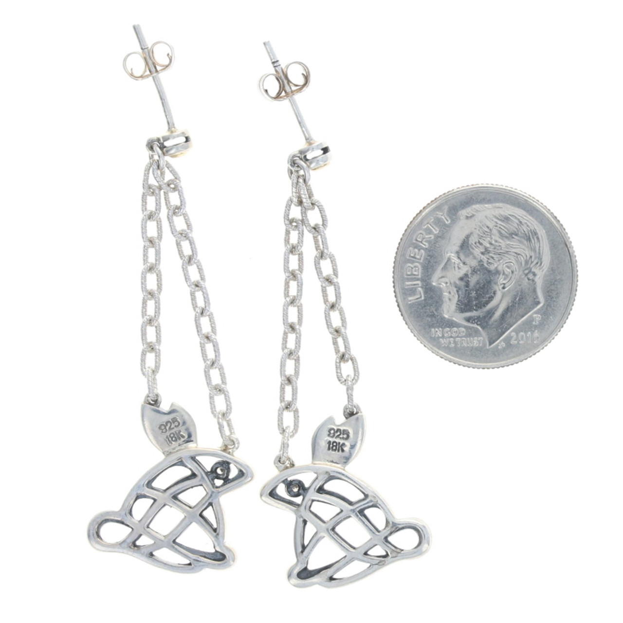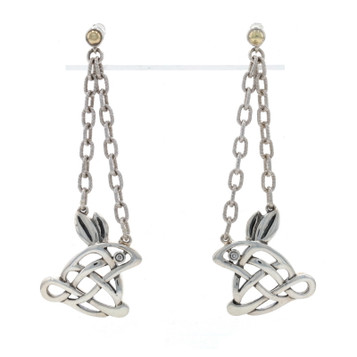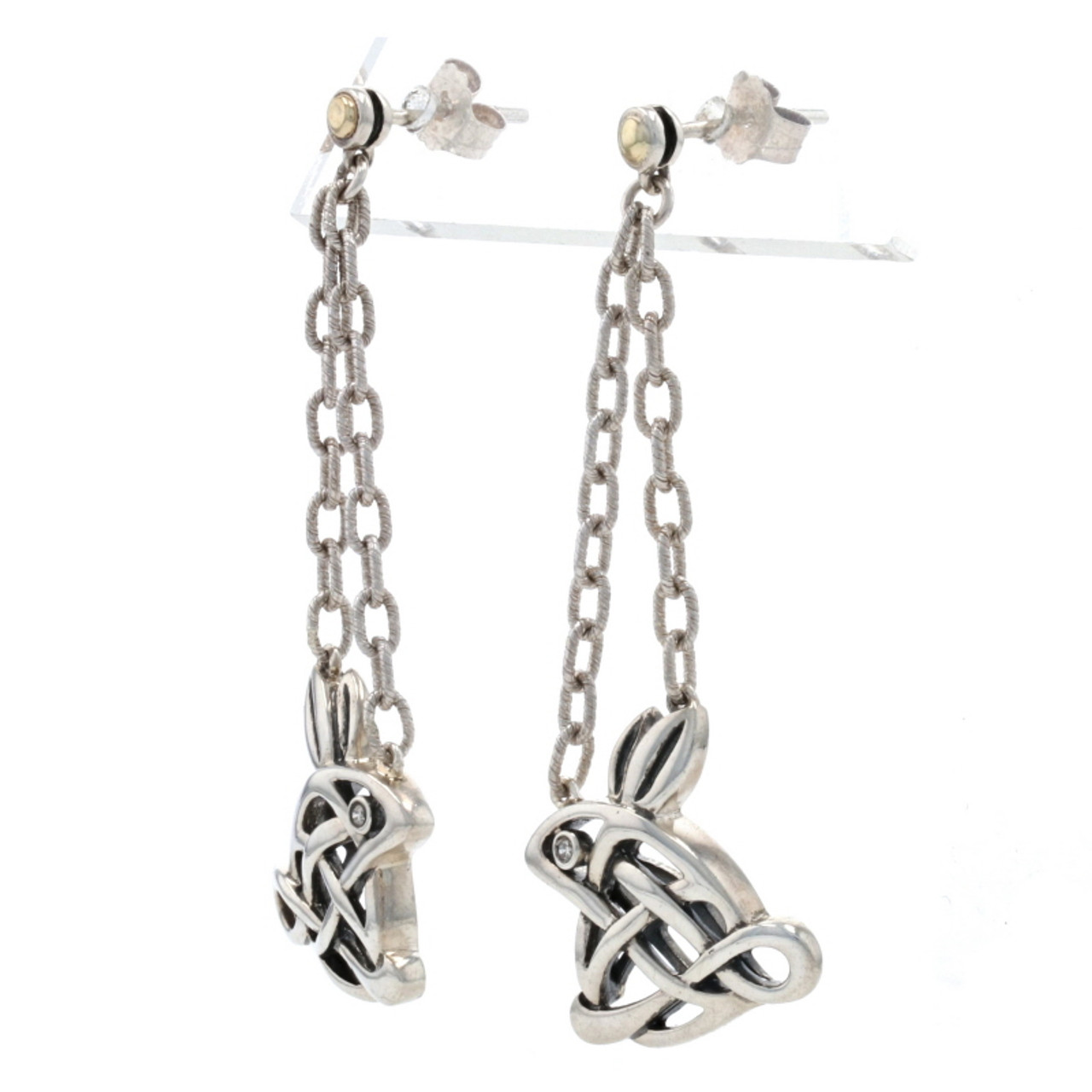 Sterling & Yellow Gold Diamond Celtic Knot Bunny Rabbit Dangle Earrings 925 &18k