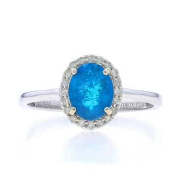 White Gold Apatite & Diamond Halo Ring - 10k Oval 2.10ctw