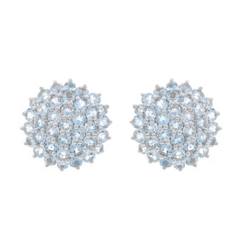 White Gold Aquamarine Large Cluster Stud Earrings -14k Rd 6.68ctw Floral Pierced