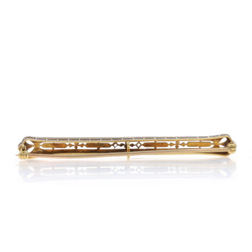 White Gold Art Deco Lingerie Bar Pin - 14k Vintage Filigree Milgrain