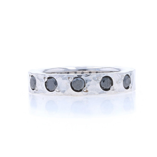 White Gold Black Diamond Five-Stone Hammered Band 14k .50ctw WedRing Sz6 Treated