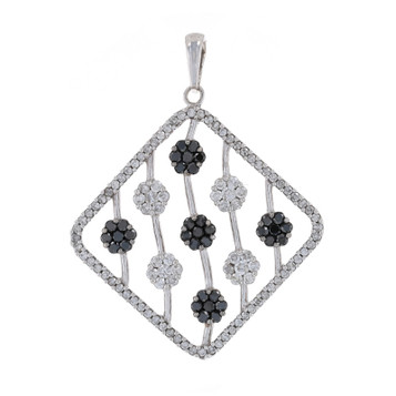White Gold Black Diamond Flower Dot Pendant -14k Round Brilliant 1.89ctw Treated