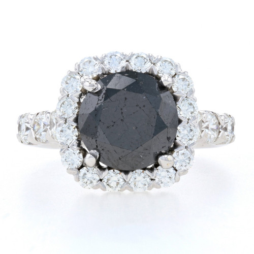 White Gold Black Diamond Halo Engagement Ring - 18k Round Brilliant Cut 4.46ctw