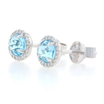 White Gold Blue Topaz & Diamond Double Halo Ring - 14k Round Portuguese 8.76ct