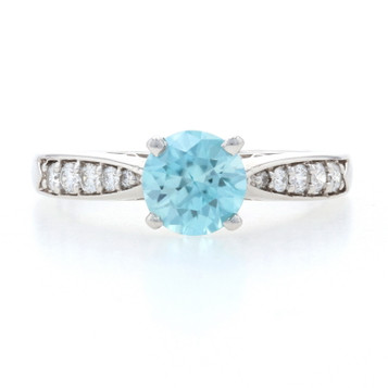 White Gold Blue Zircon & Diamond Engagement Ring - 14k Round Cut 2.43ctw
