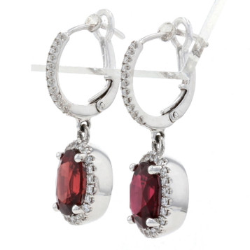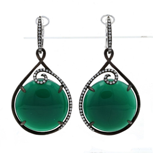 White Gold Chalcedony & Diamond Huggie Hoop Dangle Earrings - 14k Round .50ctw