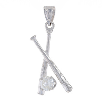 White Gold Diamond Baseball Solitaire Pendant 14k Round .54ct Sports Bats & Ball