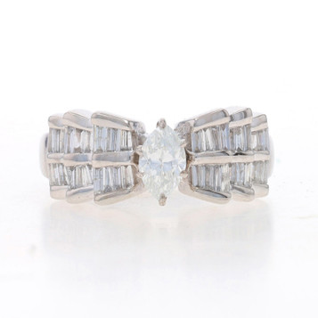 White Gold Diamond Bow Ring - 14k Marquise 1.00ctw Engagement