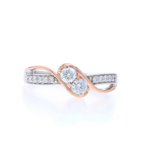 White Gold Diamond Bypass Ring - 14k Round Brilliant .44ctw Two-Stone Engagement