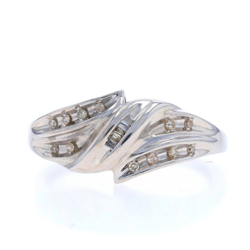 White Gold Diamond Cluster Bypass Ring - 10k Single Cut & Baguette .10ctw