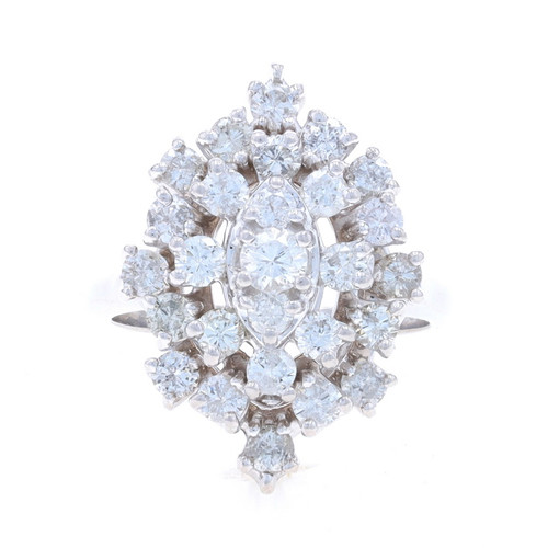 White Gold Diamond Cluster Cocktail Ring - 14k Round Brilliant 2.00ctw