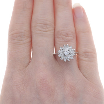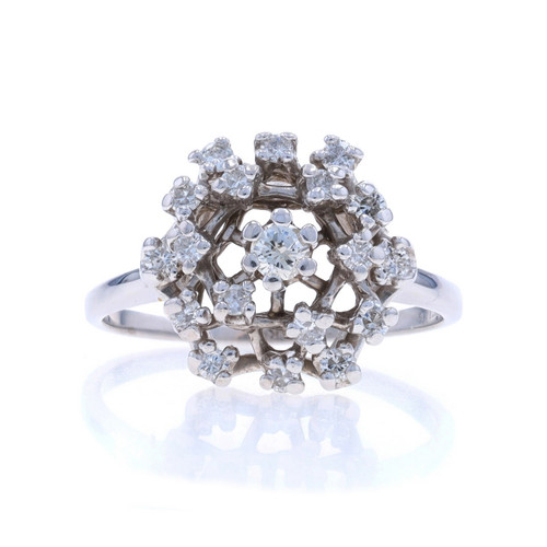 White Gold Diamond Cluster Cocktail Ring - 14k Round Brilliant .38ctw Snowflake