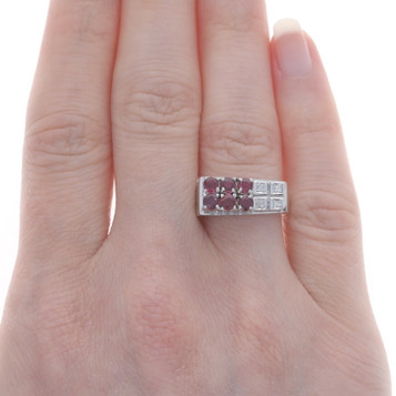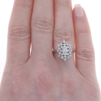 White Gold Diamond Cluster Cocktail Ring - 14k Round Brilliant .88ctw Tiered