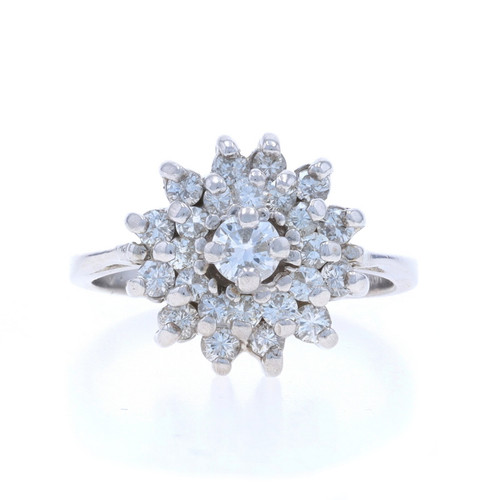 White Gold Diamond Cluster Cocktail Ring - 14k Round Brilliant .90ctw Flower