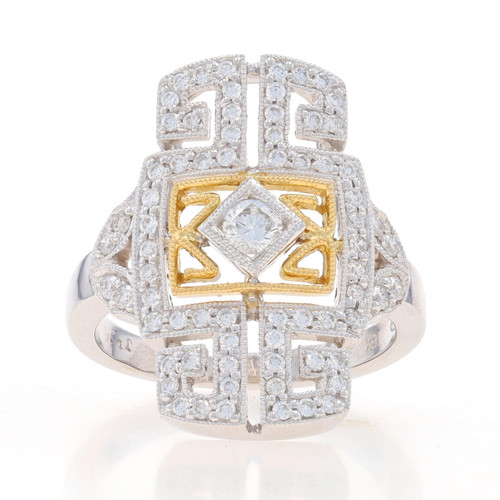 White Gold Diamond Cluster Cocktail Ring - 18k Round .84ctw Geometric Milgrain