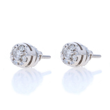 White Gold Diamond Cluster Dangle Circle Earrings 14k Rd 2.00ctw Pierce Screw-On