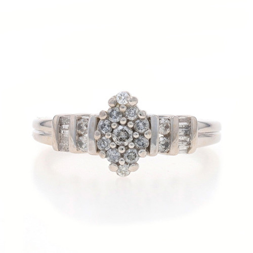 White Gold Diamond Cluster Engagement Ring - 10k Round & Baguette .50ctw