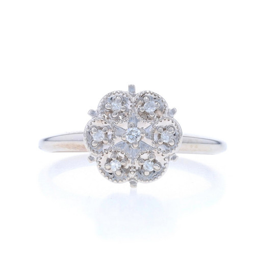 White Gold Diamond Cluster Engagement Ring - 10k Round Floral Scallop