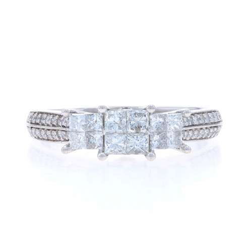 White Gold Diamond Cluster Engagement Ring - 14k Princess & Round 1.00ctw