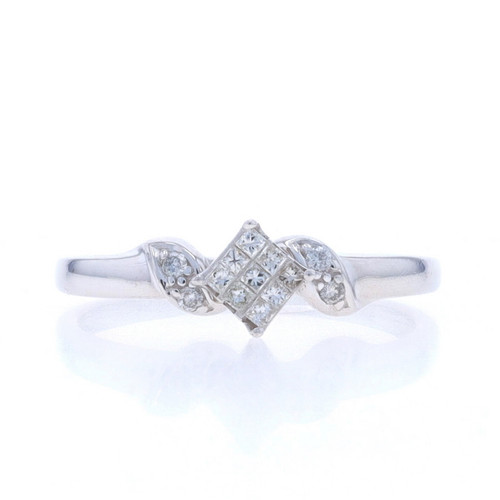 White Gold Diamond Cluster Engagement Ring 14k Princess & Round Brilliant .20ctw