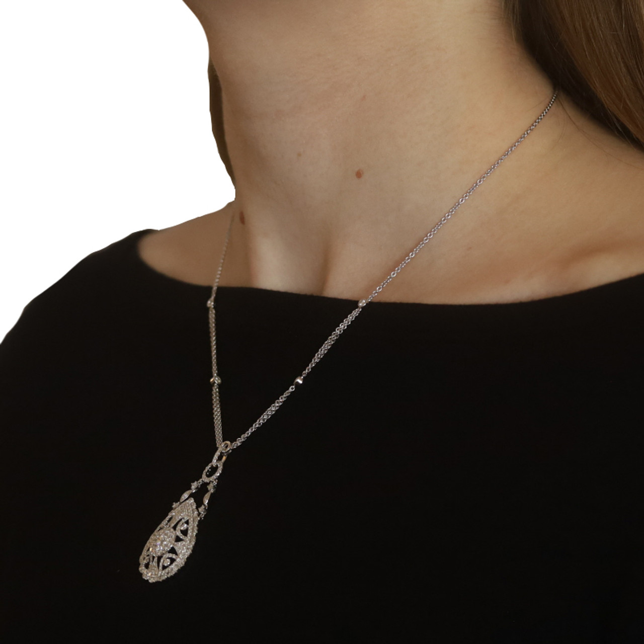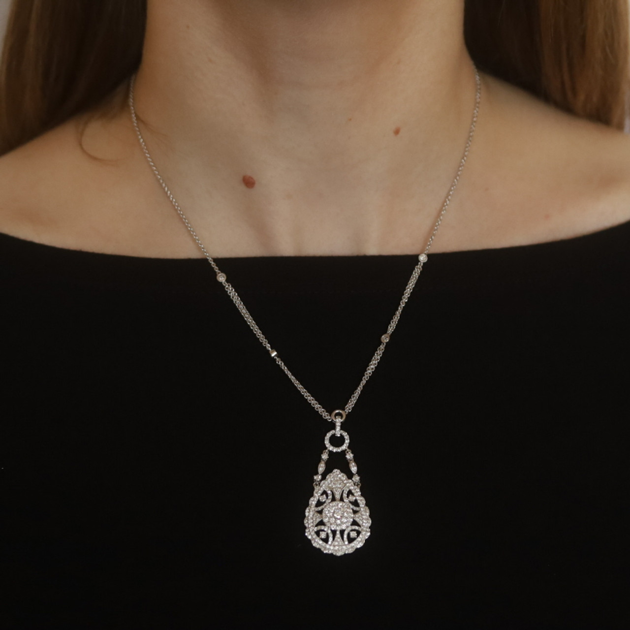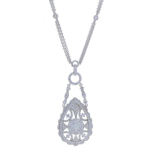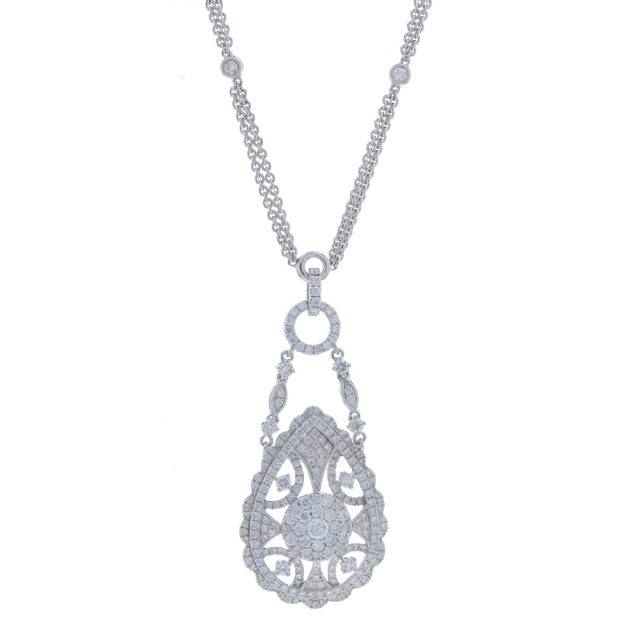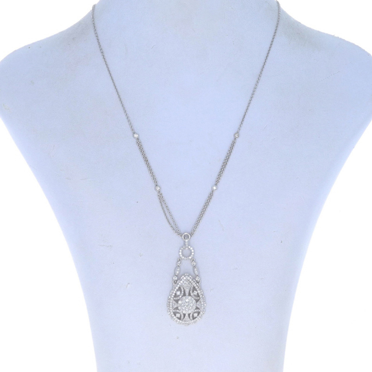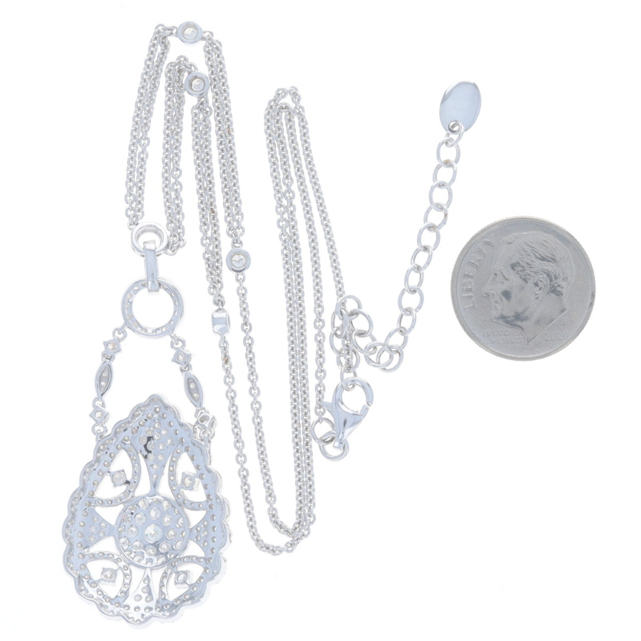 White Gold Diamond Cluster Halo Dangle Necklace - 14k Round 2.43ctw Adjustable