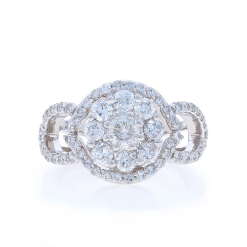 White Gold Diamond Cluster Halo Ring - 14k Round Brilliant 1.33ctw