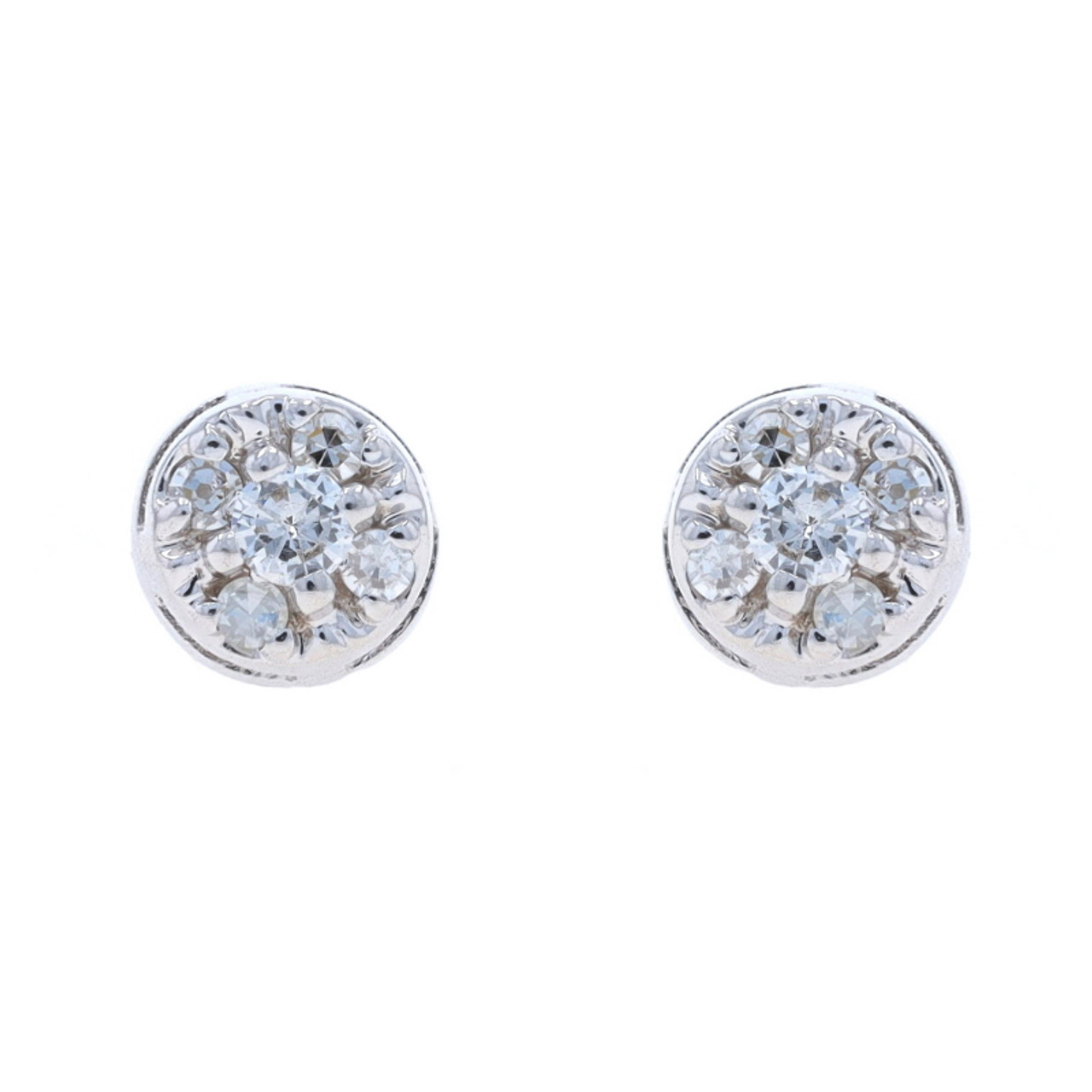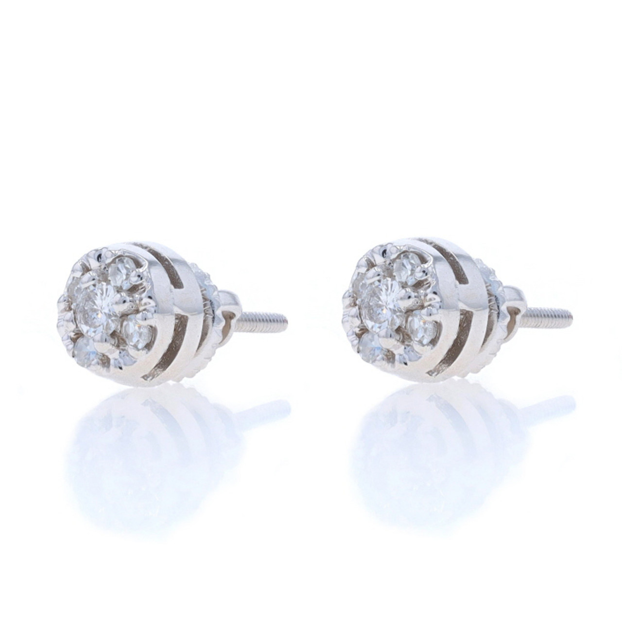 White Gold Diamond Cluster Stud Earrings - 14k Round .28ctw Pierced Screw-Ons