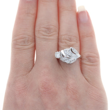 White Gold Diamond Cocktail Ring - 14k Round .60ctw Infinity Leaf Milgrain