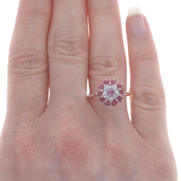 White Gold Diamond Emerald Cluster Cocktail Halo Ring - 14k Round .98ctw Floral