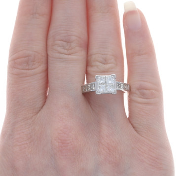 White Gold Diamond Engagement Ring & Wedding Band - 14k Princess 1.33ctw