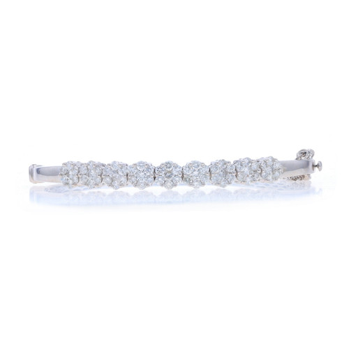 White Gold Diamond Flower Bangle Bracelet 6 3/4" - 14k Rnd 2.00ctw Halo Cluster