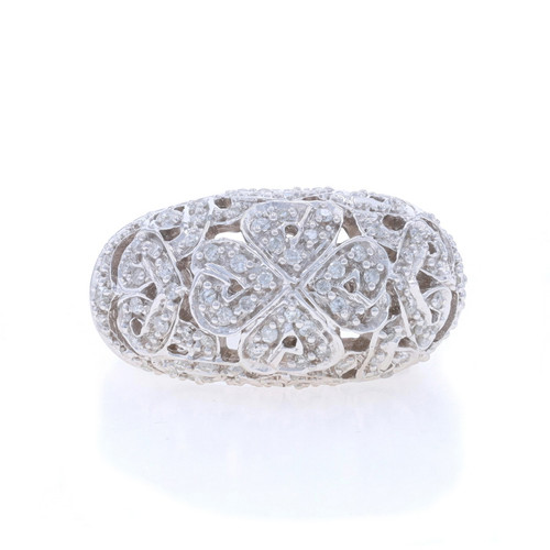 White Gold Diamond Four-Leaf Clover Cluster Cocktail Dome Band 9k 1.00ctw Ring