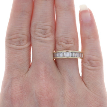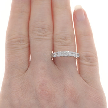 White Gold Diamond Graduated Band 14k Baguette Rnd 1.28ctw Wedding Ring Sz 6 1/2