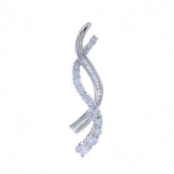 White Gold Diamond Graduated Journey Pendant 14k Round Baguette 1.00ctw Ribbons