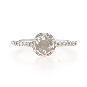 White Gold Diamond Halo Engagement Ring - 18k Rose Cut .62ctw