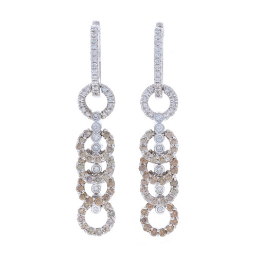 White Gold Diamond Hoop Dangle Earrings -14k Rd 2.00ctw Eternity Journey Pierced