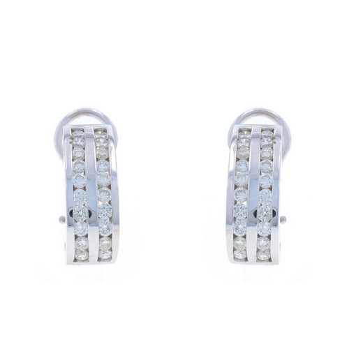 White Gold Diamond J-Hoop Earrings -14k Round 1.60ctw Stripe Channel Set Pierced