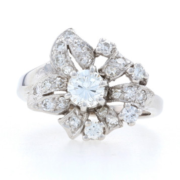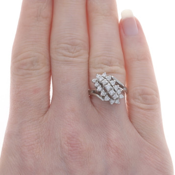 White Gold Diamond Retro Bow Cluster Cocktail Bypass Ring 14k 1.16ctwGIA Vintage