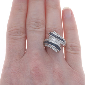 White Gold Diamond Sapphire Cluster Cocktail Bypass Ring -14k Rnd 1.82ctw Floral