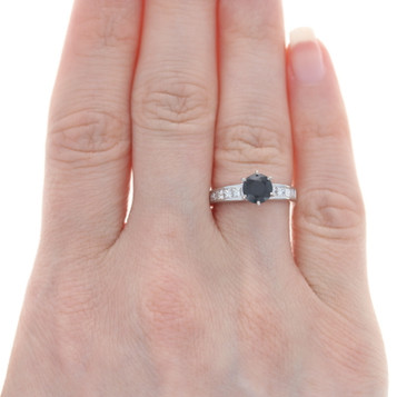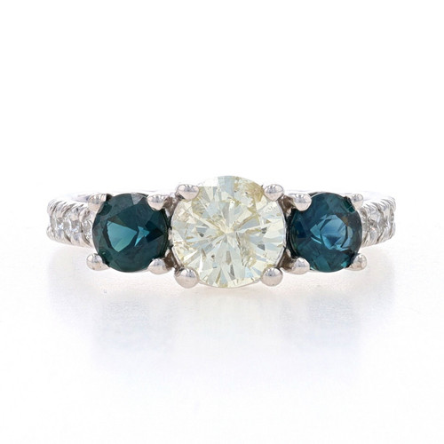 White Gold Diamond & Sapphire Three-Stone Engagement Ring 14k Round 2.05ctw