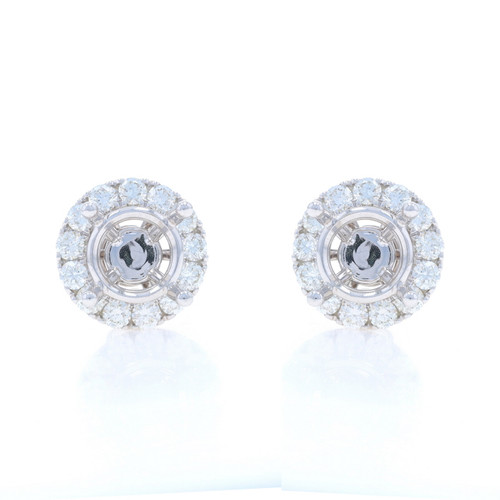 White Gold Diamond Semi-Mount Earrings 18k 2.34ctw Studs w/Halo Jacket Enhancers