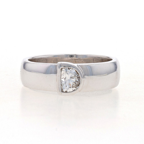 White Gold Diamond Solitaire Ring -14k Half Moon .40ct Initial D Monogram Letter