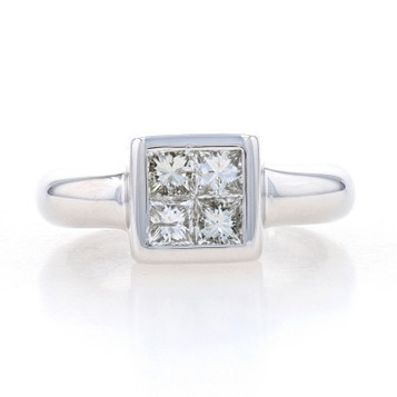 White Gold Diamond Square Cluster Ring - 14k Princess .64ctw Engagement