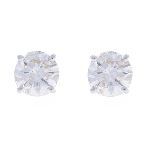 White Gold Diamond Stud Earrings - 14k Round Brilliant 2.00ctw Pierced
