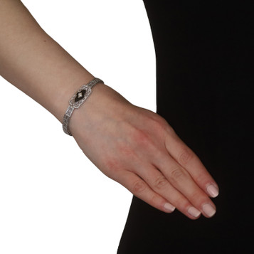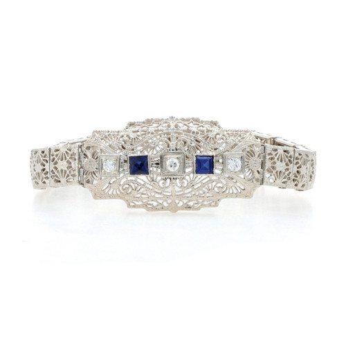 White Gold Diamond & Synthetic Sapphire Art Deco Bracelet 6 1/4" 14k Euro .91ctw