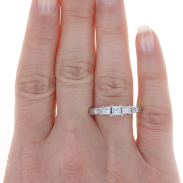 White Gold Diamond Three-Stone Engagement Ring - 14k Princess .92ctw