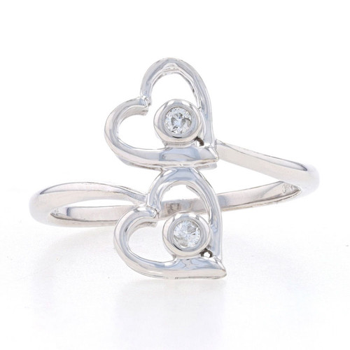 White Gold Diamond Two-Stone Bypass Ring - 14k Round Brilliant Two Hearts Love